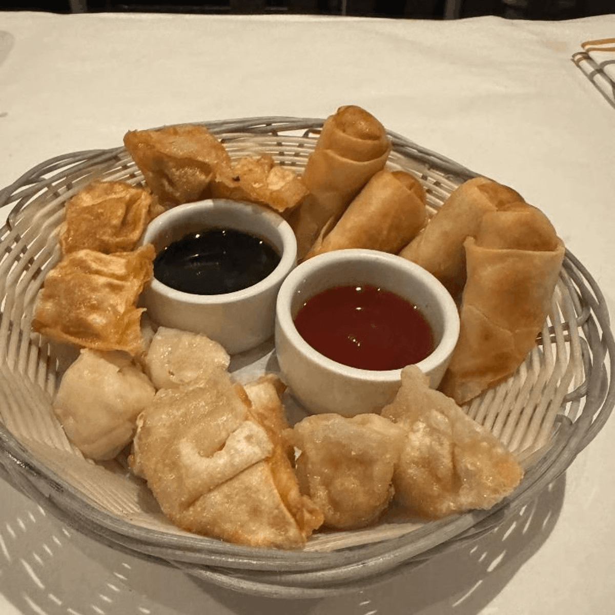 Thai Sampler - steamed shrimp dumpling, fried pot sticker, fried wonton and vegetable egg rolls