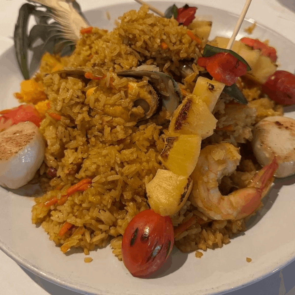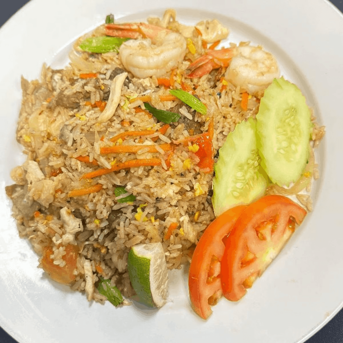 Southern style Thai fried rice with scallops, mussels, shrimp, pineapple and cashews. Served with brown rice