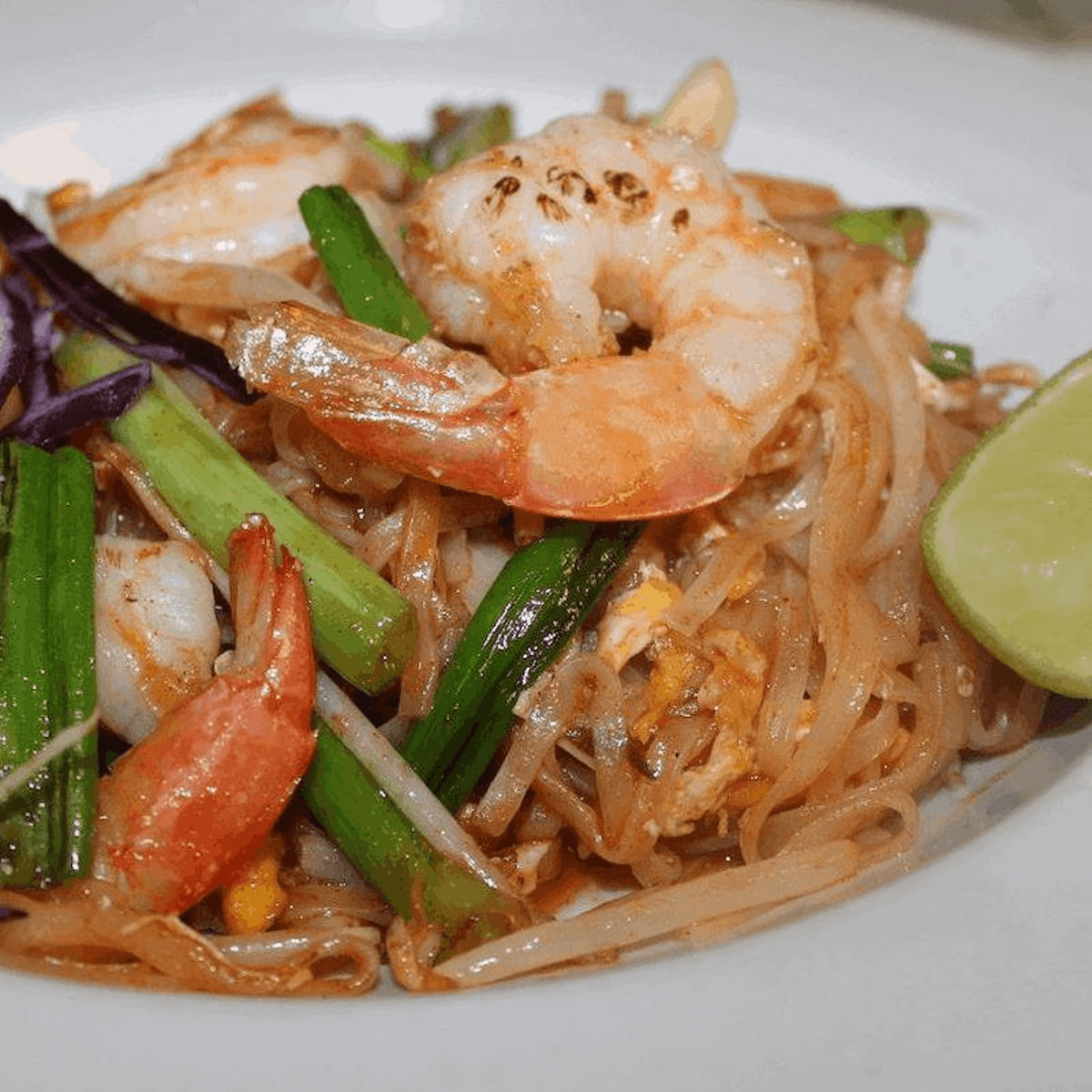 Thai thin rice noodles with egg, bean sprouts, onions, tofu, crushed peanuts, stir-fried with Pad Thai sauce.