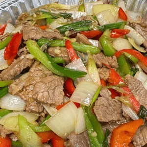 Stir-fried assorted fresh peapods, tomatoes, bean sprouts, onions, water chestnuts, carrots, broccoli and shiitake mushrooms in oyster sauce. Your choice of: Chicken, pork, tofu, (for additional charge: beef, ground chicken or shrimp)