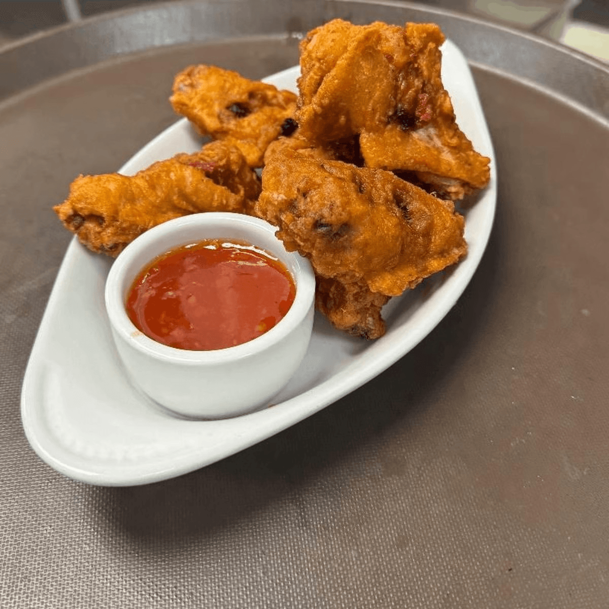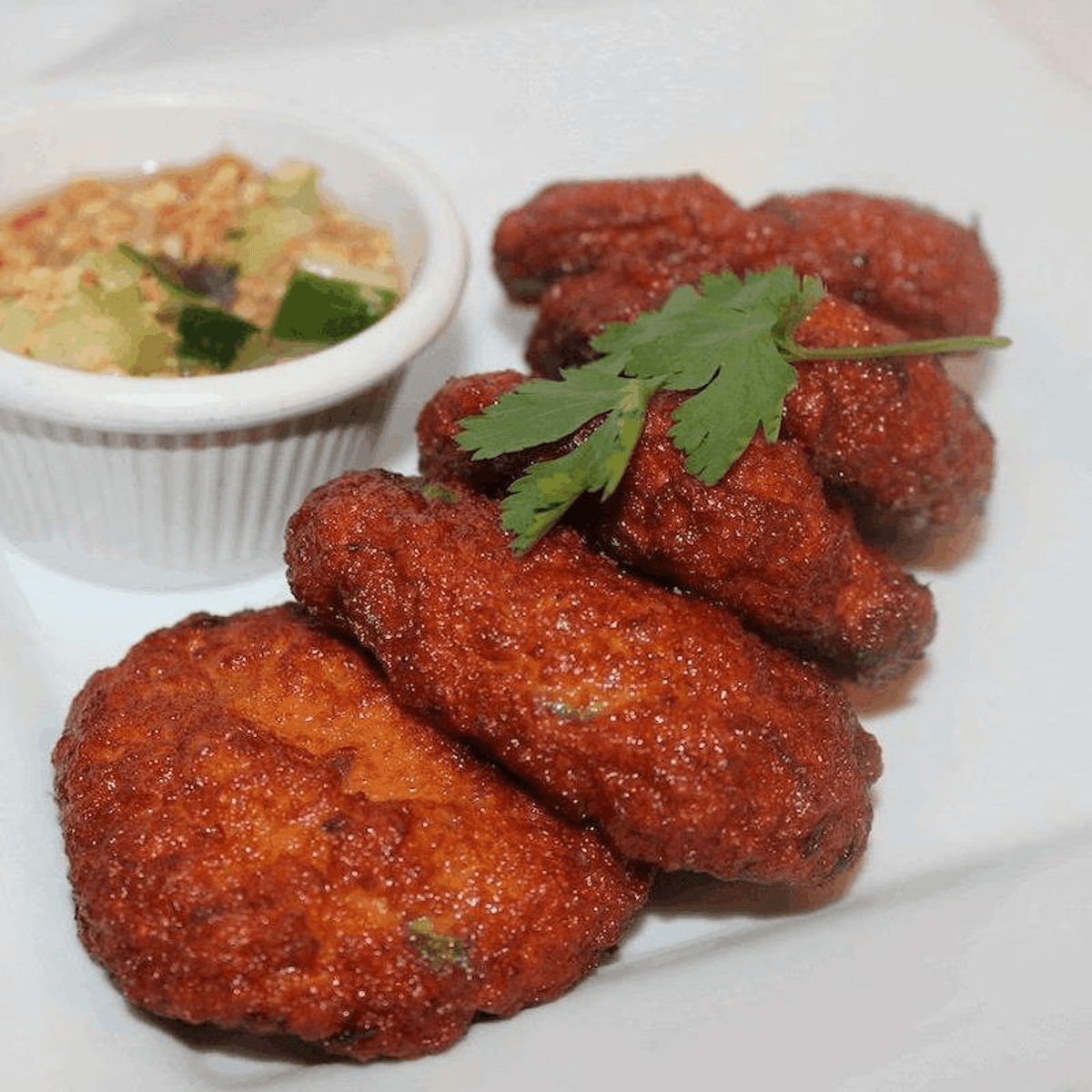 Crispy perfectly deep fried traditional Thai style chicken wings, served with sweet chili sauce