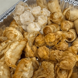 Steamed shrimp dumplings, fried chicken pot stickers, crispy shrimp wontons and vegetable egg rolls. Served with sweet brown sauce and sweet and sour sauce