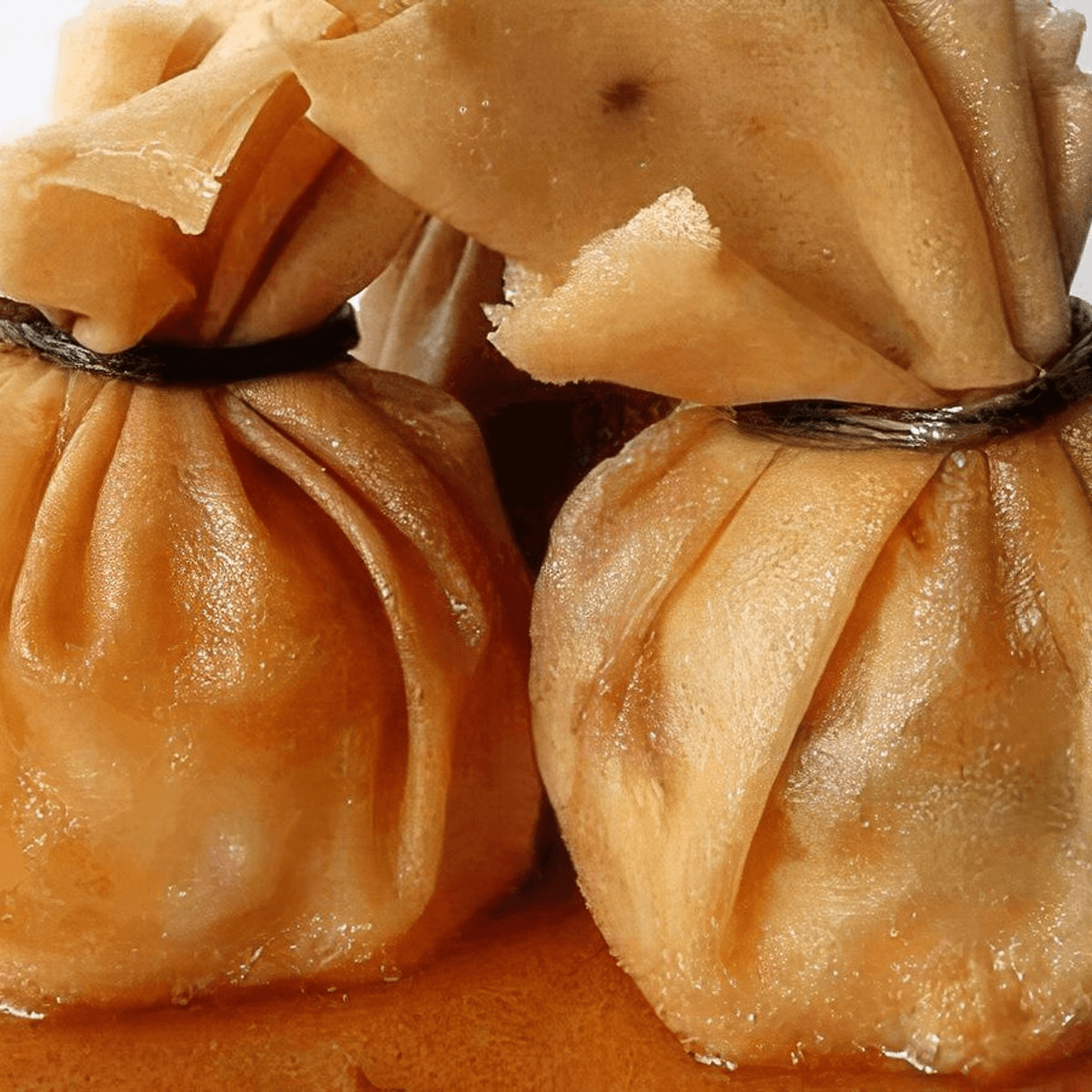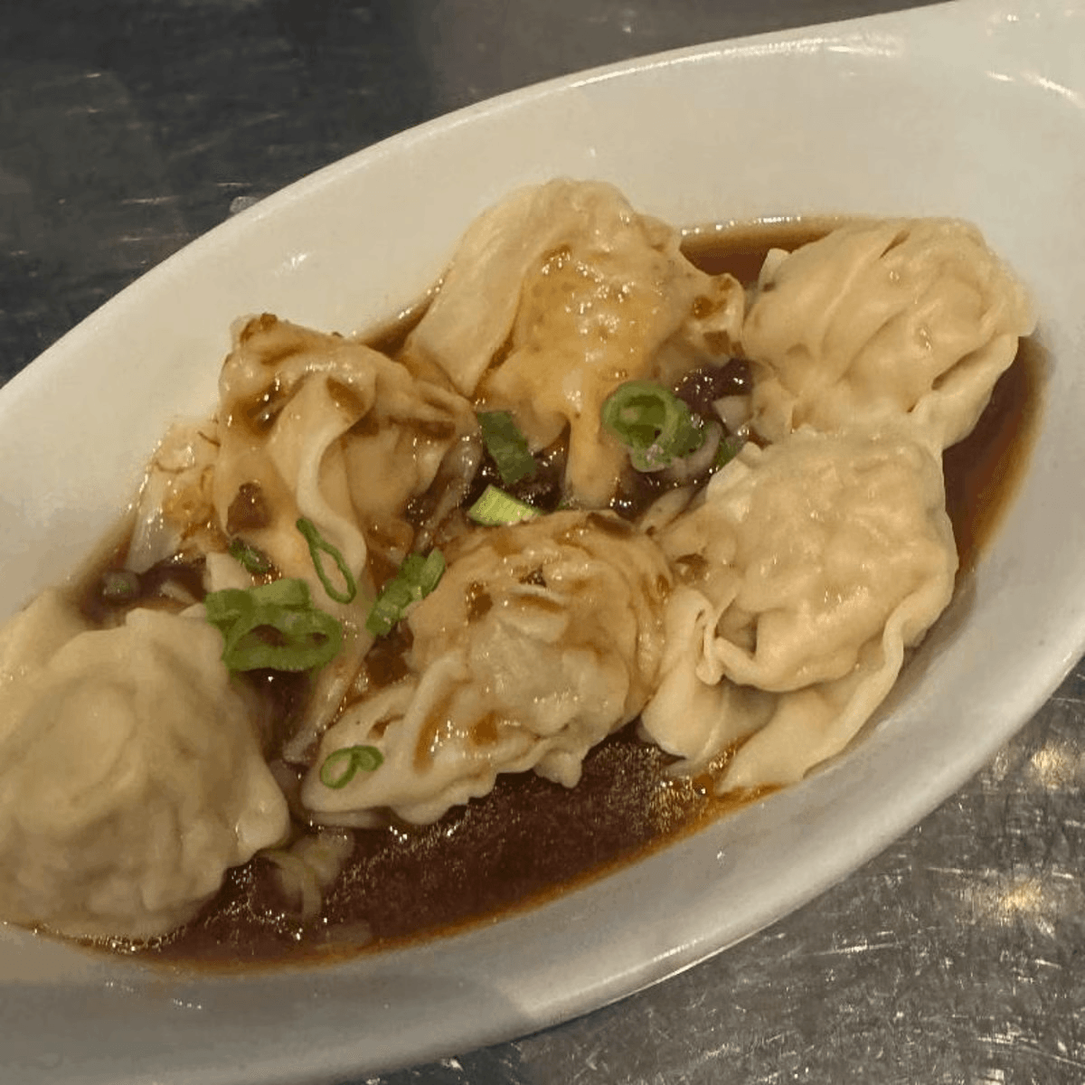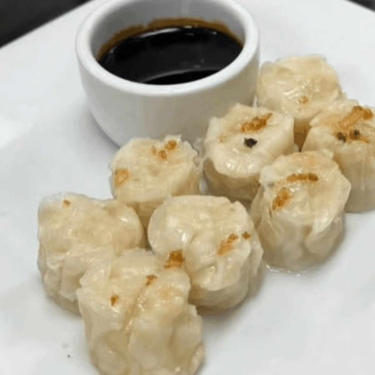 8 pieces. Steamed shrimp dumplings, served with sweet brown sauce
