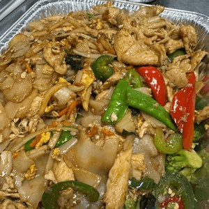 Thai style big flat rice noodles, Chinese broccoli and egg, stir-fried with sweet soy sauce. Your choice of: Chicken, pork, tofu, (for additional charge: beef, ground chicken or shrimp)