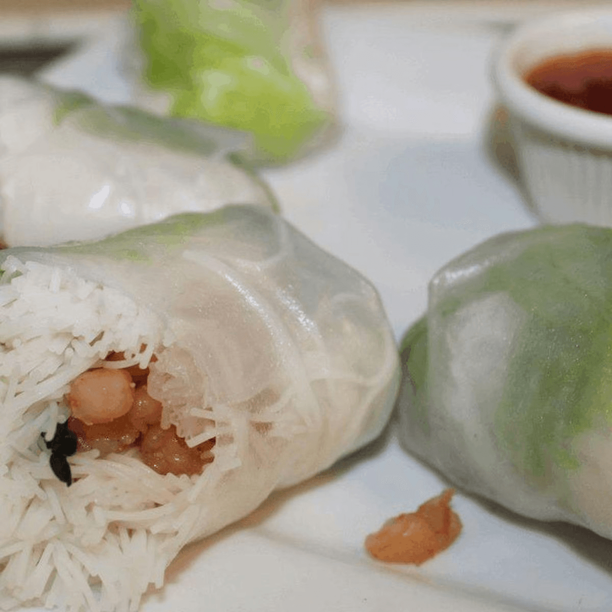 2 pieces. Fresh Thai soft spring rolls filled with fresh romaine lettuce, basil leaves, soft noodles and sautéed shrimp. Served with sweet chili sauce