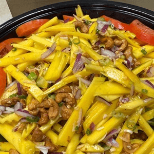 Seasonal green mango, roasted shredded coconut, cashews, green onions and shallots. Mixed with our house dressing and served on lettuce